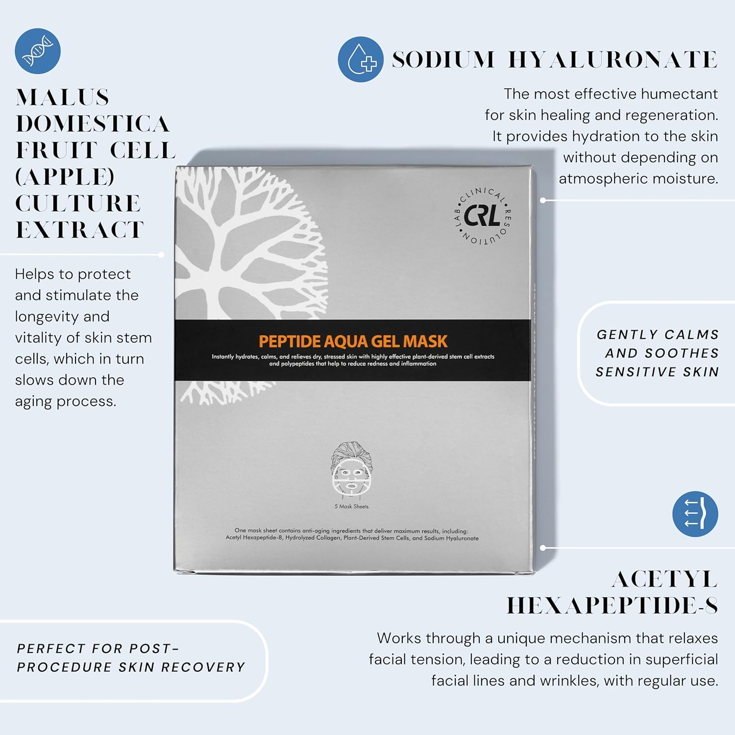 Clinical Resolution Peptide Aqua Gel Mask Instant Hydration, Soothing, Cooling Post-Treatment & Microneedling Relief, 10 Single-Use Masks (2 Boxes, 5 per Box)